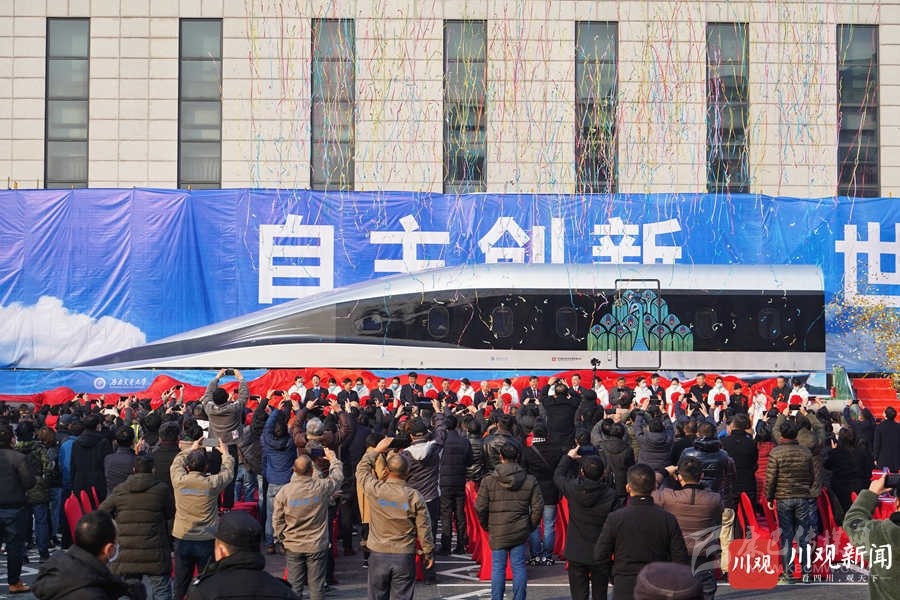 2021年1月13日上午,具有完全自主知識產(chǎn)權(quán)的高溫超導(dǎo)高速磁浮工程化樣車及試驗線在西南交通大學(xué)九里校區(qū)正式啟用。華小峰 攝