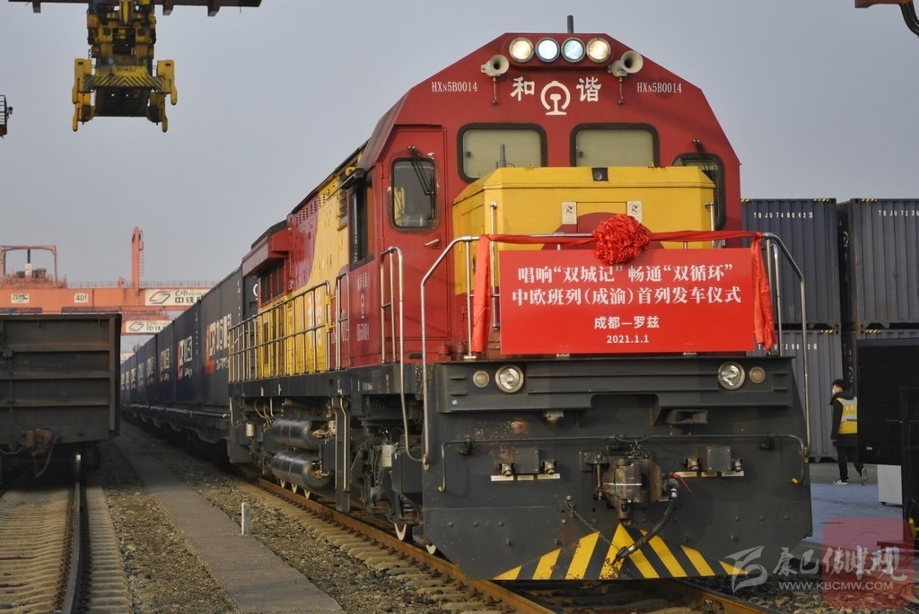1月1日上午10時15分,重慶、成都兩地同時發(fā)出2021年中歐班列(成渝)第一趟列車。