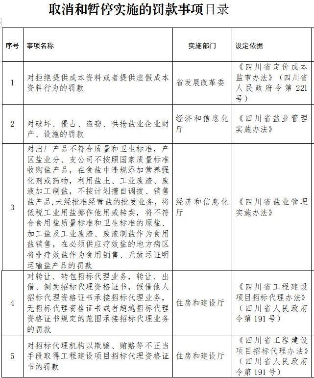 四川省政府?dāng)M取消和暫停行使25項(xiàng)罰款事項(xiàng)