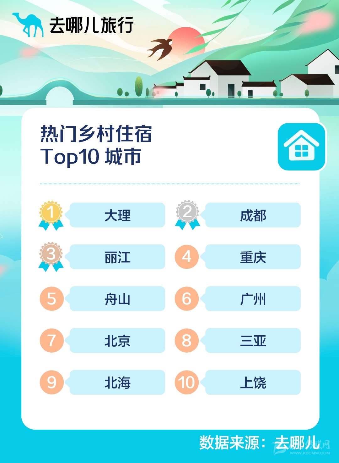去哪兒旅行預(yù)測(cè):2022清明假期熱門鄉(xiāng)村住宿TOP10城市。