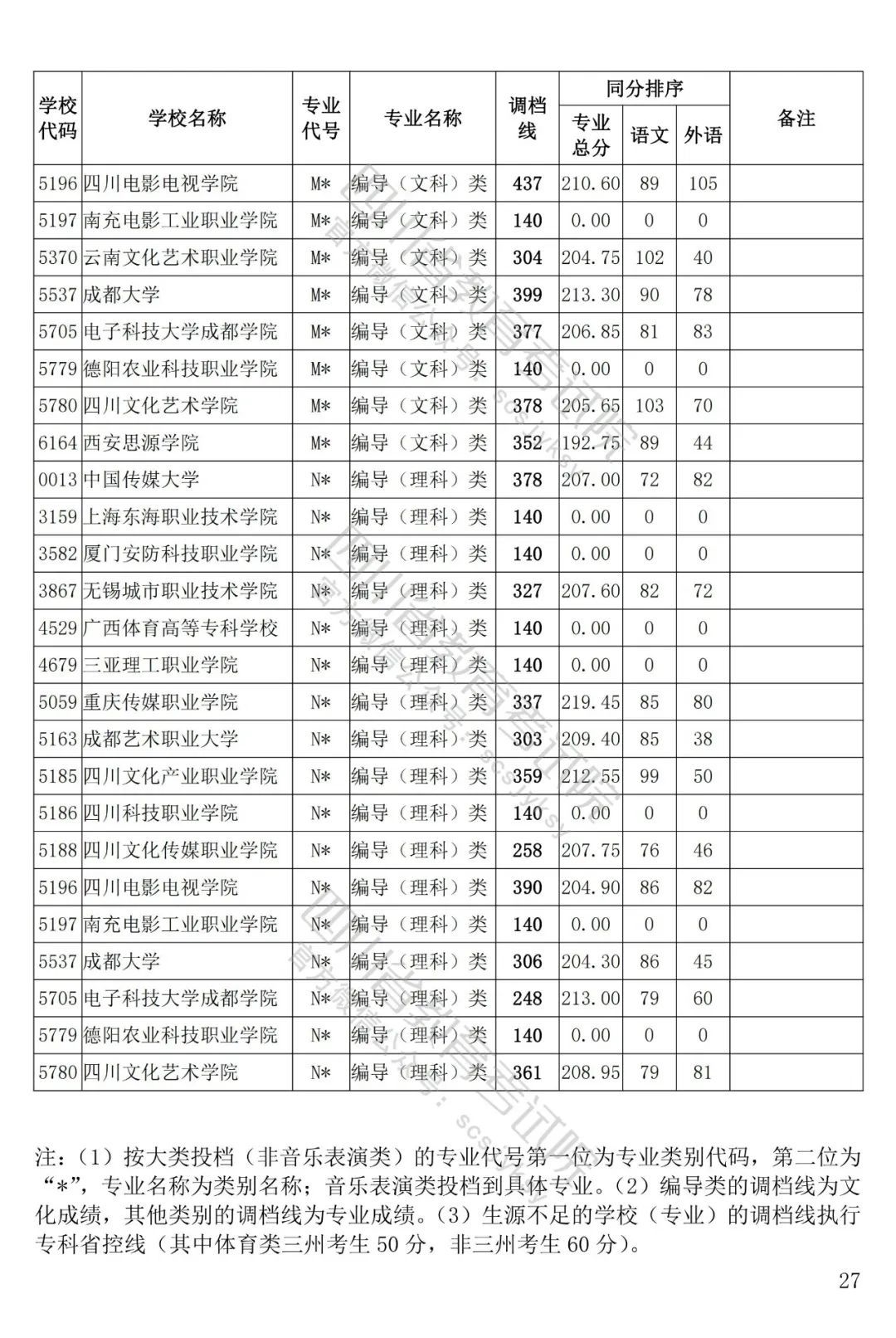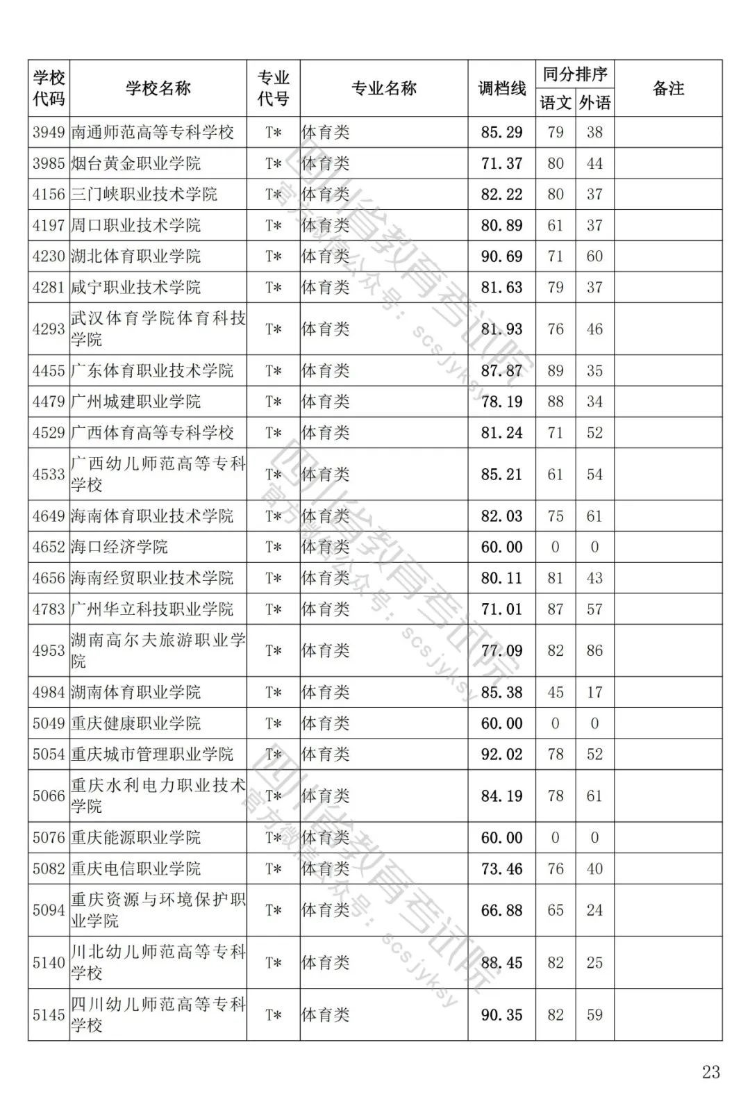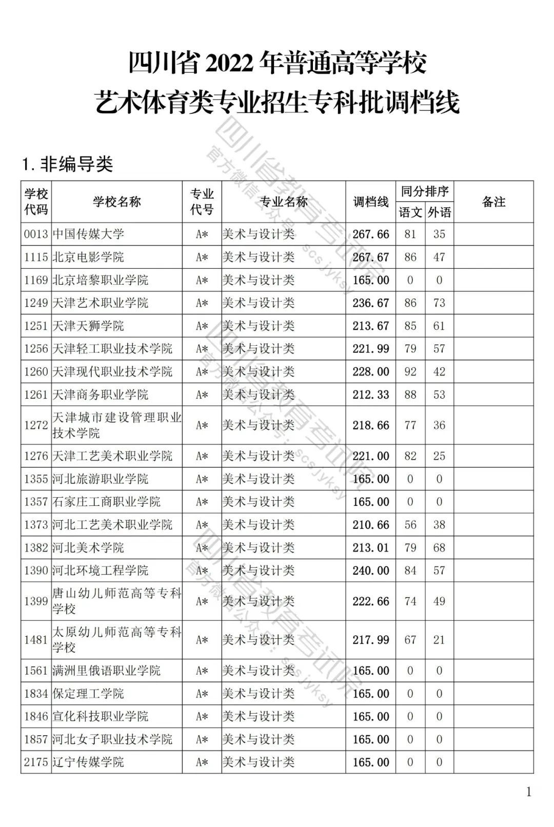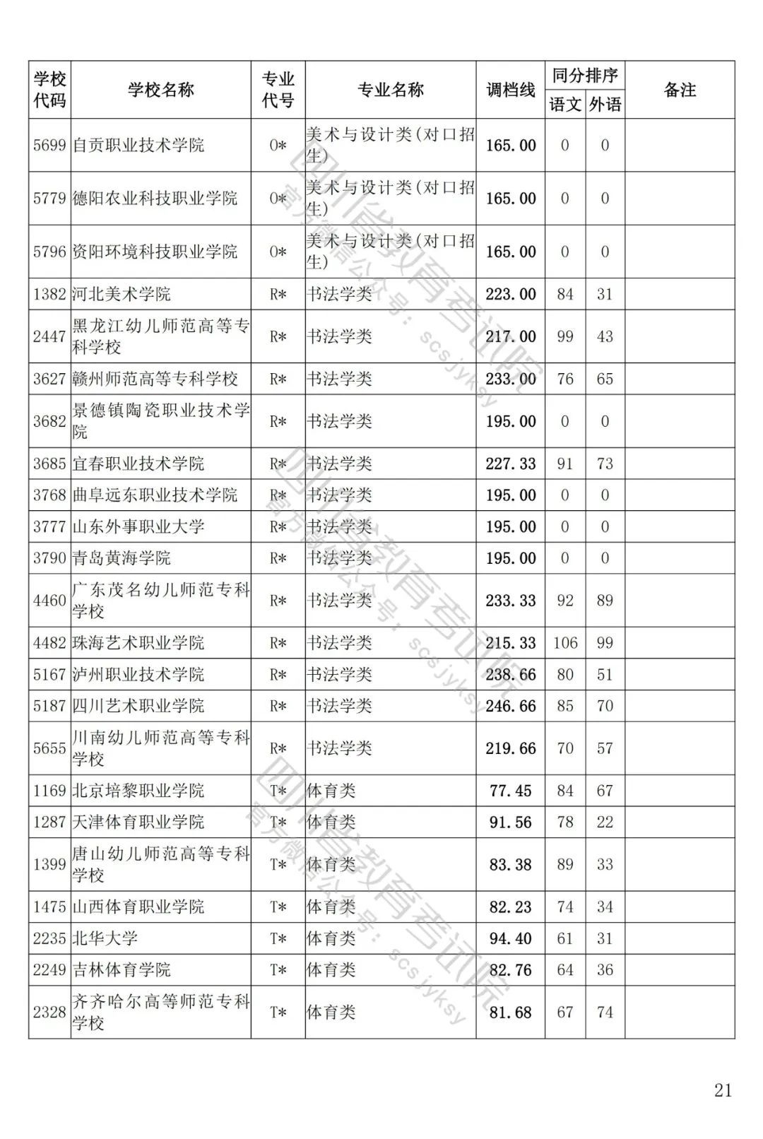 四川省2022年藝術(shù)體育類??婆{(diào)檔線出爐