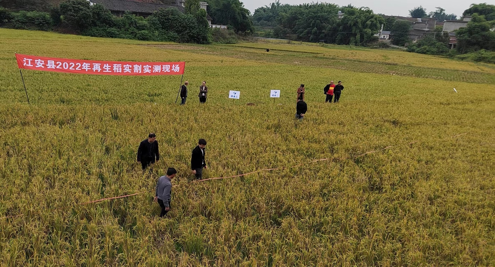 江安縣下長(zhǎng)鎮(zhèn)大田村再生稻測(cè)產(chǎn)驗(yàn)收現(xiàn)場(chǎng) (江安縣農(nóng)業(yè)農(nóng)村局供圖)
