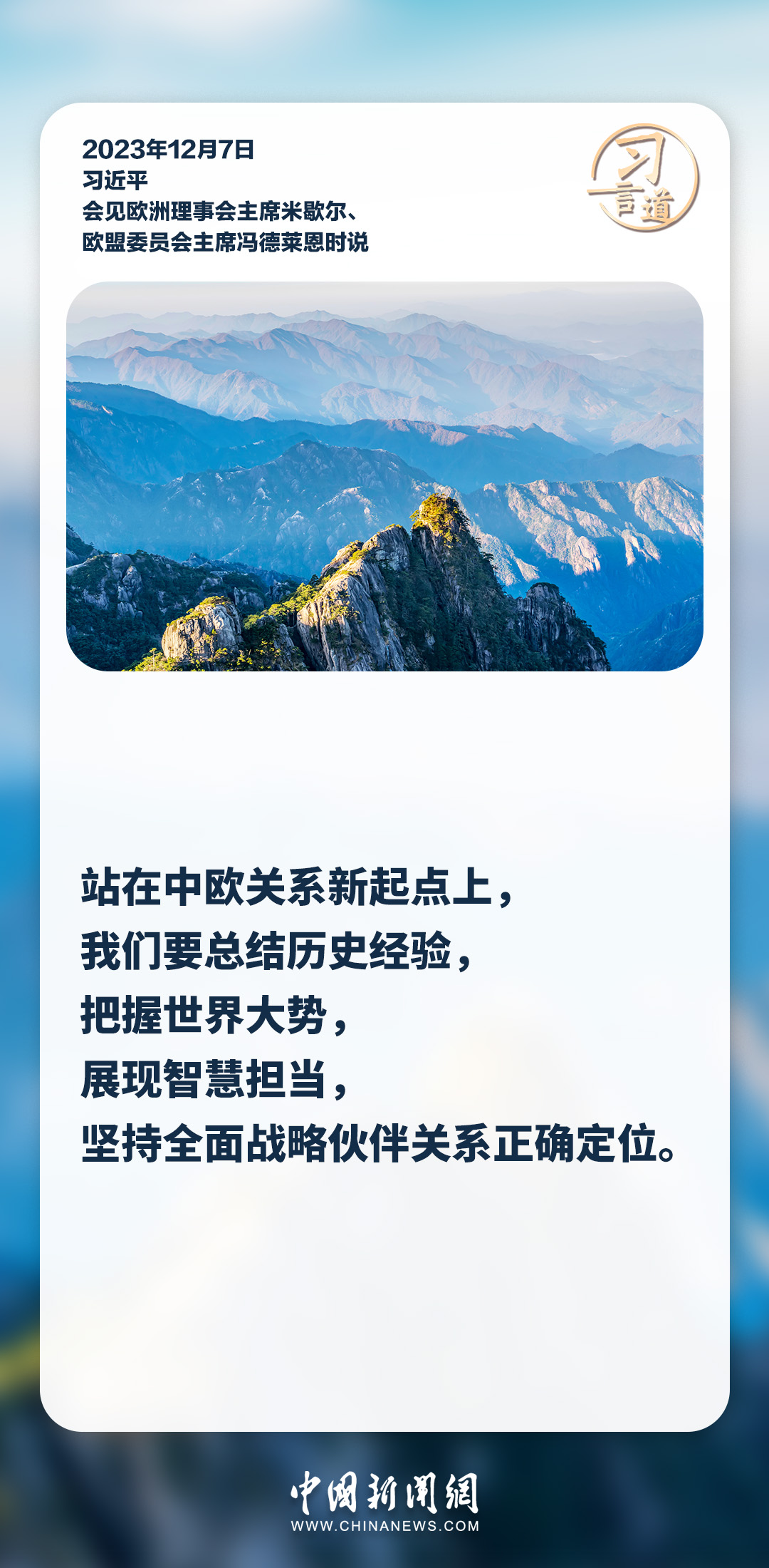 12月7日,國家主席習(xí)近平在釣魚臺(tái)國賓館會(huì)見來華舉行第二十四次中國—?dú)W盟領(lǐng)導(dǎo)人會(huì)晤的歐洲理事會(huì)主席米歇爾和歐盟委員會(huì)主席馮德萊恩。習(xí)近平說——