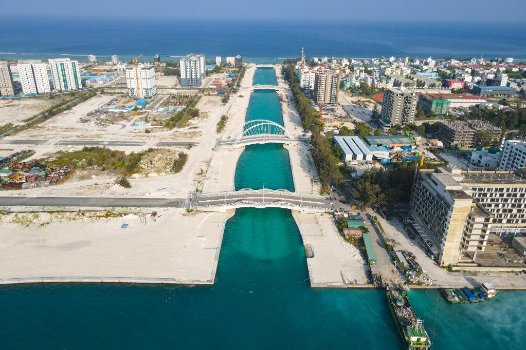 ??大橋所連接的胡魯馬累,是建設在填海島嶼上的新興城市,寄托著馬爾代夫人民對發(fā)展的美好期待。如今,一座座嶄新的公寓樓矗立在海岸旁,開放式小區(qū)整潔漂亮。由中國機械設備工程股份有限公司承建的約4000套公寓,幫助解決當?shù)刈》繂栴}。不少當?shù)鼐用癜堰@些小區(qū)稱作“中國城”。