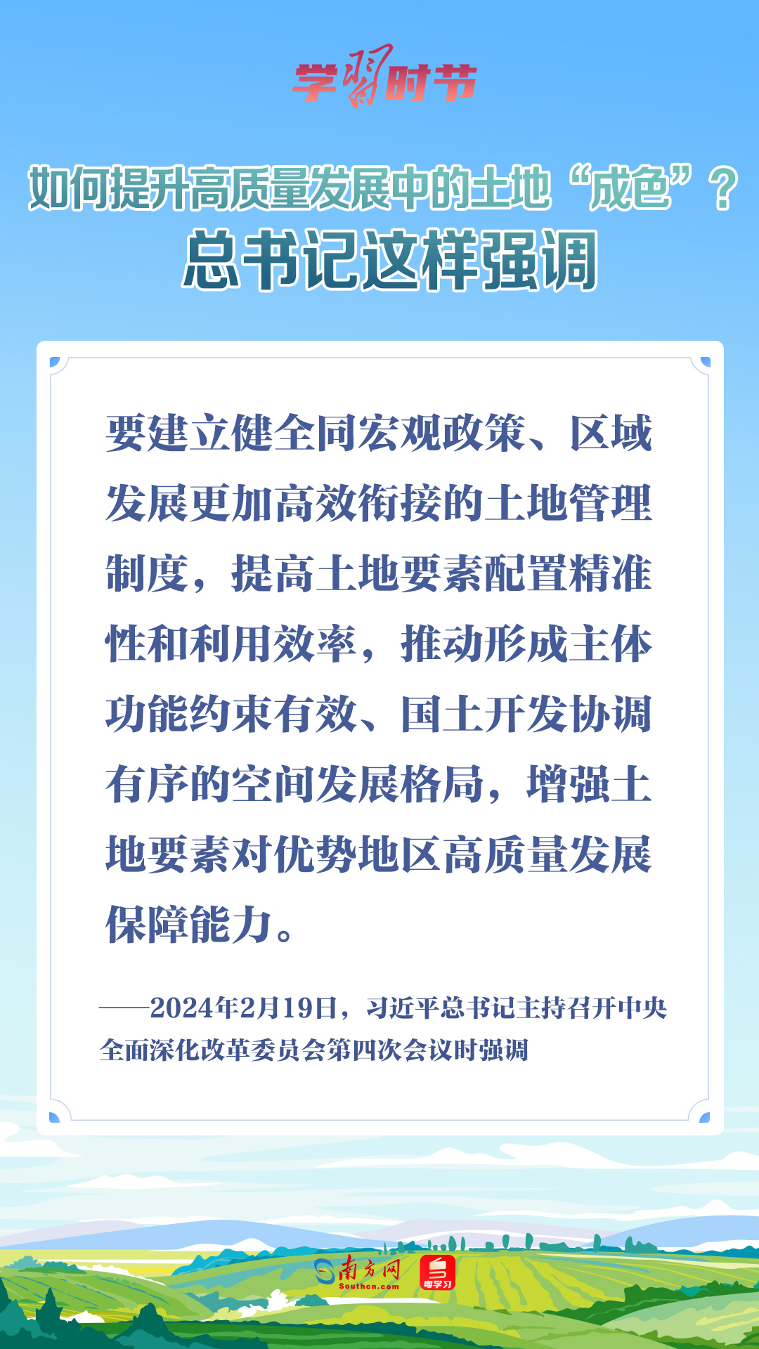 2月19日,習(xí)近平總書記在主持中央全面深化改革委員會(huì)第四次會(huì)議時(shí)強(qiáng)調(diào),要建立健全同宏觀政策、區(qū)域發(fā)展更加高效銜接的土地管理制度,提高土地要素配置精準(zhǔn)性和利用效率,推動(dòng)形成主體功能約束有效、國(guó)土開發(fā)協(xié)調(diào)有序的空間發(fā)展格局,增強(qiáng)土地要素對(duì)優(yōu)勢(shì)地區(qū)高質(zhì)量發(fā)展保障能力。