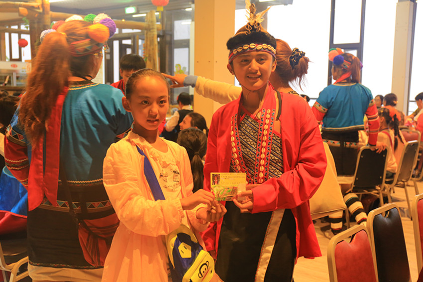巴塘小朋友在臺上跳著歡快的《激情弦子》,臺下臺灣師生及學生家長立即打起節(jié)拍,把活動推向高潮。兩岸小朋友在午餐時間互相結(jié)對子,并通過贈送紀念品,互留電話號碼的方式將友情延續(xù)下去。在幾天的交流活動中,巴塘天籟童聲合唱團的孩子們也受到了臺灣當?shù)貙W生家長們的熱烈歡迎。在每場演出的現(xiàn)場,隨處可見拿著相機、攝像機記錄交流活動全過程的當?shù)貙W生家長。在巴塘孩子們的表演間隙,幾位熱心的當?shù)貙W生家長們立即給巴塘孩子送上礦泉水,詢問他們“累不累,熱不熱”。一位家長告訴筆者:“我是學生家長,當我看到巴塘小朋友在如此炎熱的天氣下,穿著華麗厚實的民族服飾演出,我的眼睛里全是淚花,真的特別感動。看到這些孩子們天真的笑容,聽著他們嘹亮的歌聲,我和其他家長一樣都被震撼了。我還專門拍了視頻打算回去給家人看,我希望他們在臺灣的這幾天能夠開心快樂,也希望他們以后還能來臺灣做更多交流。”