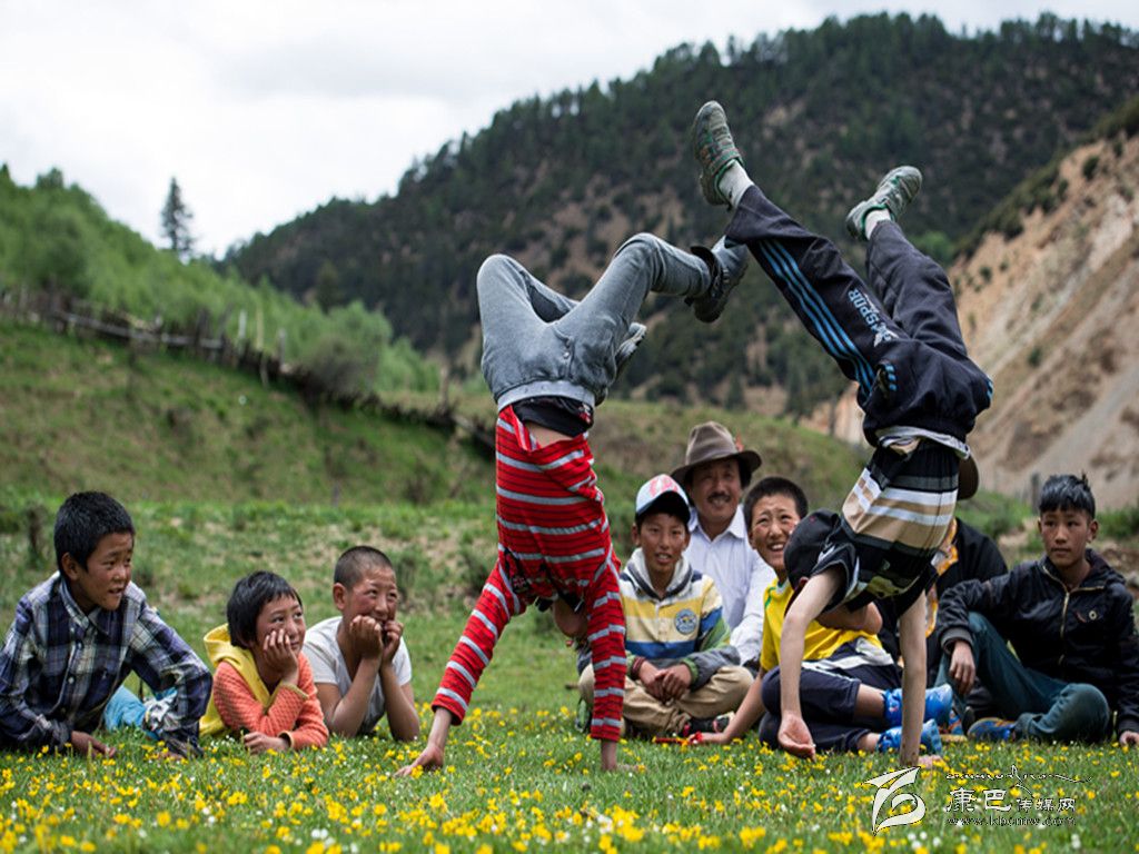 5月31日,雅江縣西俄洛鄉(xiāng)康巴漢子村,兩個(gè)孩在玩倒立。