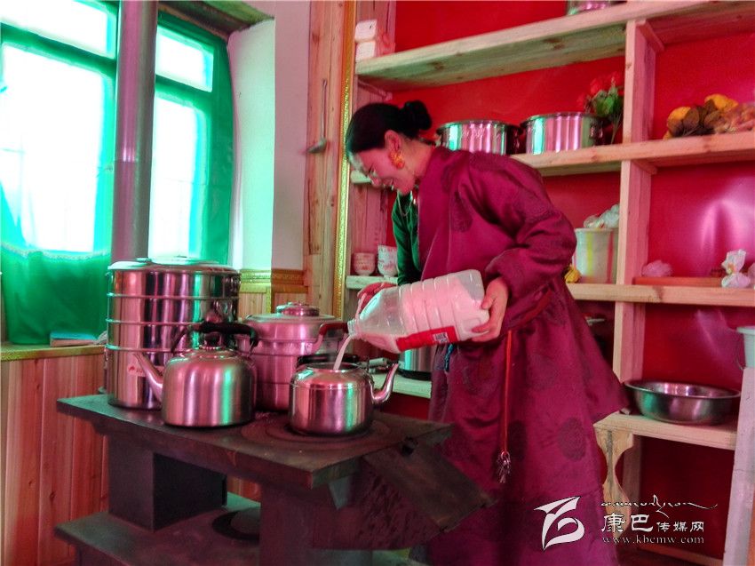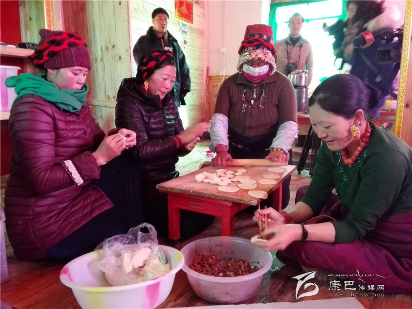走進(jìn)江巴達(dá)吉的家里,一股熱浪撲面而來(lái),小鋼爐上燒著熱水,幾個(gè)女人正在備料準(zhǔn)備包酥油包子和牛肉餃子。藏桌上擺滿了糖果、牛肉,豐盛的食物琳瑯滿目。江巴達(dá)吉愜意地喝著奶子茶,知足和幸福寫在臉上。