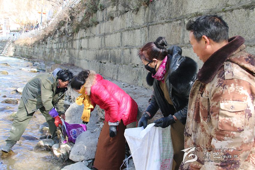 空飲料瓶,方便面盒,廢紙箱,左岸一只,右岸一只。有時(shí)候,他們剛剛清理了,剛轉(zhuǎn)個(gè)身,又有人往河里扔垃圾。“他們以為把垃圾往河里一扔,河水就會(huì)沖走,這是很自私的想法,總以為垃圾只要不在自家門邊就行。”德草的同事格絨曲批抱怨說(shuō)。