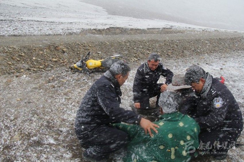 時(shí)值寒冬,甘孜雪域高原上大雪紛飛,石渠縣公安局民警仍然在雪中執(zhí)勤,救助受傷群眾,為了群眾能過好春節(jié),他們被凍得臉色發(fā)紫。