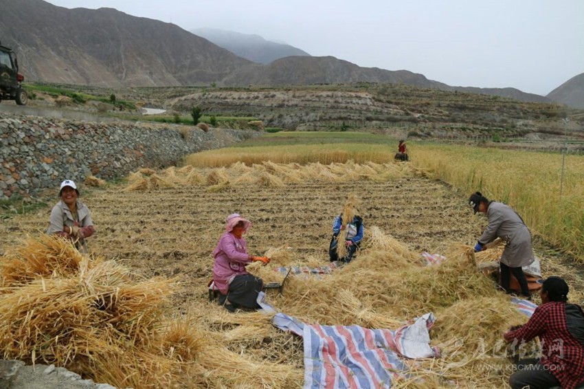 本網(wǎng)訊(劉小兵 金鑫 攝影報道)眼下,我州多地群眾正在忙碌春耕,海拔較低、氣溫較高的得榮縣曲雅貢鄉(xiāng)卻已是一片麥浪金黃,忙碌著收割冬小麥的人們?nèi)宄扇旱厝雎湓谔镩g地頭。一張張溢滿笑容的臉和一束束飽滿的麥穗構(gòu)成了一幅幅豐收的喜悅圖景。