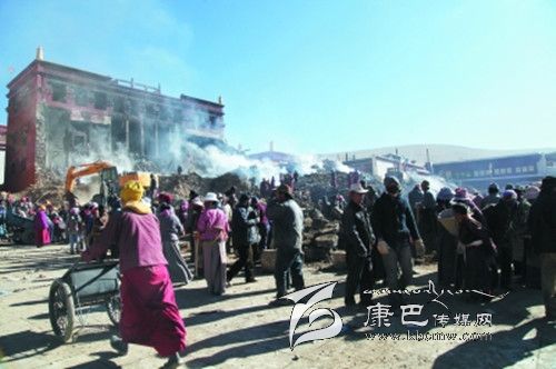由于大殿四周圍墻過高,對滅余火造成了極大阻擾。凌晨6點,指揮部決定從正門突破,克服天氣寒冷帶來的影響,率先對正門燃燒窗子進行滅火,并對正門掉落的木頭進行冷卻,挖掘機、推土機進場作業(yè),隨時對余火進行撲滅。兩輛消防車有序進行加水、送水,保障火場水源不間斷,防止余火出現(xiàn)復(fù)燃。通過迅速反應(yīng)、力量到位,措施有力、方法得當(dāng),火災(zāi)于17日上午9時基本撲滅??h委書記雷建平、縣長格勒多吉等縣級領(lǐng)導(dǎo)在寒夜中自始至終堅守在火災(zāi)現(xiàn)場,協(xié)調(diào)指揮,檢查督促,顧不上休息,忘記了疲勞,直至大火被撲滅。實現(xiàn)了在整個火災(zāi)和撲救過程中,無人員傷亡,防止了次生災(zāi)害,確保安全有序。據(jù)了解,此次火災(zāi)因中心大殿二樓電器線路短路造成,過火面積4241平方米,初步確定財產(chǎn)損失8094.6余萬元。
