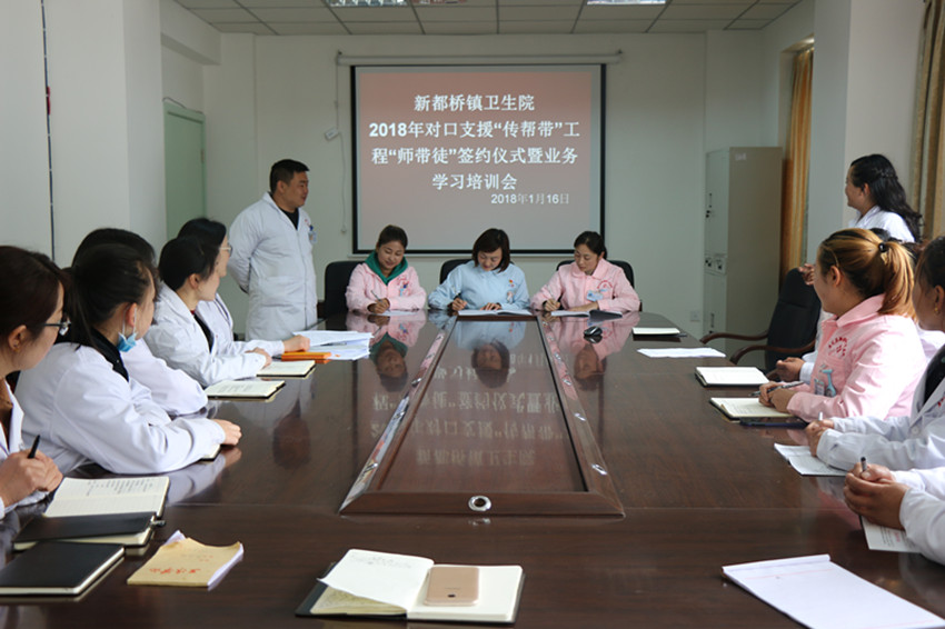 春風(fēng)沐浴、雨露滋潤;德隆情盛、高屋建瓴。為進(jìn)一步提升康定地區(qū)基層醫(yī)療衛(wèi)生機(jī)構(gòu)服務(wù)能力,打造一支有擔(dān)當(dāng)、有能力、可支撐的本土醫(yī)療衛(wèi)生人才隊(duì)伍。在對口幫扶工作中,康定市衛(wèi)計(jì)局高度重視本土人才培養(yǎng),將“傳幫帶”工作作為了重點(diǎn)。2018年1月8日,康定市疾控中心與都江堰市疾控中心通過座談商榷了“傳幫帶”幫扶方案,達(dá)成了共識,下一步將通過對口幫扶,互訪交流、業(yè)務(wù)培訓(xùn),信息溝通共享等方式,在綜合管理、等級評審、人員能力建設(shè)、實(shí)驗(yàn)室檢驗(yàn)檢測能力建設(shè)、應(yīng)急處置能力建設(shè)等方面進(jìn)行重點(diǎn)“傳幫帶”。與此同時,康定市第二人民醫(yī)院舉辦了對口支援“傳幫帶”工程“師帶徒”簽約儀式暨工作推進(jìn)會議。會上各位專家與選中的學(xué)員進(jìn)行現(xiàn)場簽約,雙方約定在今后的一年中,專家們通過理論培訓(xùn)、教學(xué)手術(shù)(操作)、教學(xué)查房、疑難病例討論、常見病多發(fā)病診治、開展新技術(shù)新業(yè)務(wù)等方面進(jìn)行指導(dǎo)、幫扶、協(xié)作,明確了各自的目標(biāo)任務(wù)和工作職責(zé)。