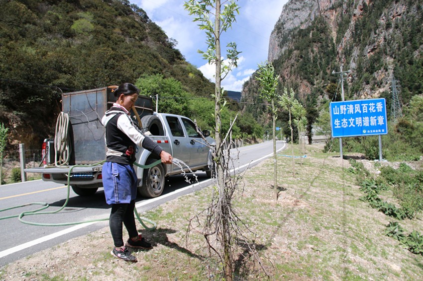 植樹容易,保持存活率很難?!爸矘渲矘洌环衷跃欧止?。我們植樹造林不只看數(shù)量,更注重質(zhì)量,注重栽植方法和科學的后期養(yǎng)護管理,保證樹木的成活率。”6月11日,在白玉縣絨蓋鄉(xiāng),長江造林局駐白玉管護站站長梁榮忙著進行現(xiàn)場管護技術(shù)指導,“把遮陽網(wǎng)裹緊點、把刺巴綁緊點,以免牛和馬啃皮子;水要澆透,不然水分不夠,樹子一斷水,再想‘返陽’就難了;護欄水泥樁要栽牢,不然牛馬一撞就倒了……”。