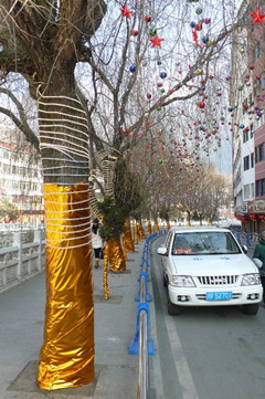 本網(wǎng)訊(記者 周華) 攝在馬年春節(jié)即將來臨之際,一批喜慶的新年裝飾亮相康定街頭,為節(jié)日的康定城增添了幾分喜氣。據(jù)康定縣市政管理局有關(guān)人士介紹,每年春節(jié),康定都要采取措施營造節(jié)日氛圍。今年的節(jié)日氛圍營造本著節(jié)儉、喜慶、熱烈的原則,在色調(diào)上突出傳統(tǒng)的紅色,融入了福、春、馬年生肖等元素,既有傳統(tǒng)的特點(diǎn),又有民族特色。據(jù)了解,這些節(jié)日裝飾主要分布在城市街區(qū)、廣場及繁華地段。在有城市行道樹的街道,則采用裝飾與燈光結(jié)合的方式,突出城市的動(dòng)感,使夜晚的康定城更加浪漫而富有生機(jī)。