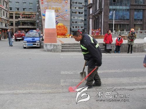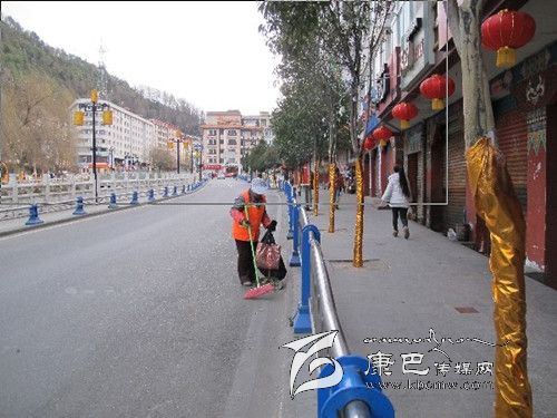 春節(jié)期間,環(huán)衛(wèi)工人們放棄節(jié)假日,用辛勤勞動(dòng)換來了城市的干凈、整潔。圖為記者在康定街頭捕捉到的鏡頭。