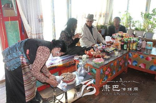 說(shuō)話間,聽見女兒四郎曲珍和媽媽從廚房里端著牛肉包子走了出來(lái)。廚房里冰箱、高壓電飯煲等家用電器一應(yīng)俱全,他興激動(dòng)地說(shuō):“現(xiàn)在,縣上大力實(shí)施農(nóng)村的五通工程,用電也十分方便;以前打酥油茶都用木桶,現(xiàn)在有高原專用的打茶機(jī),既快捷又方便;……”