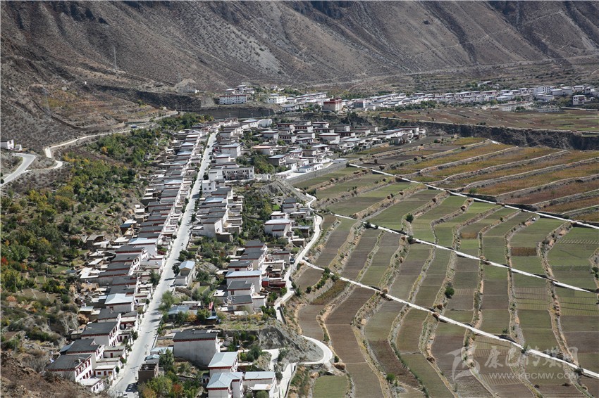 作為處于高山峽谷間的得榮縣鄉(xiāng)村,村民大多生活在懸崖峭壁上,或地質(zhì)災(zāi)害嚴(yán)重的地區(qū),生存條件極差,為了徹底斬除窮根,縣委、縣政府把開(kāi)發(fā)的目光投向了地勢(shì)相對(duì)平坦的因都?jí)巍?1月10日,記者再訪因都?jí)巍3醵囊蚨級(jí)侮?yáng)光燦爛,溫暖如春。一棟棟民居、一層層梯田橫臥在青山綠水間,蔚為壯觀。農(nóng)閑季節(jié),村民們愜意地坐在自家庭院的亭子里,喝著酥油茶、品嘗著藏橘、梨子、蘋(píng)果和核桃。村道兩旁的藏橘碩果滿(mǎn)枝頭,寬敞的街道、靚麗的民居,一幅壯美的富春山居圖在金沙江畔徐徐展開(kāi)。