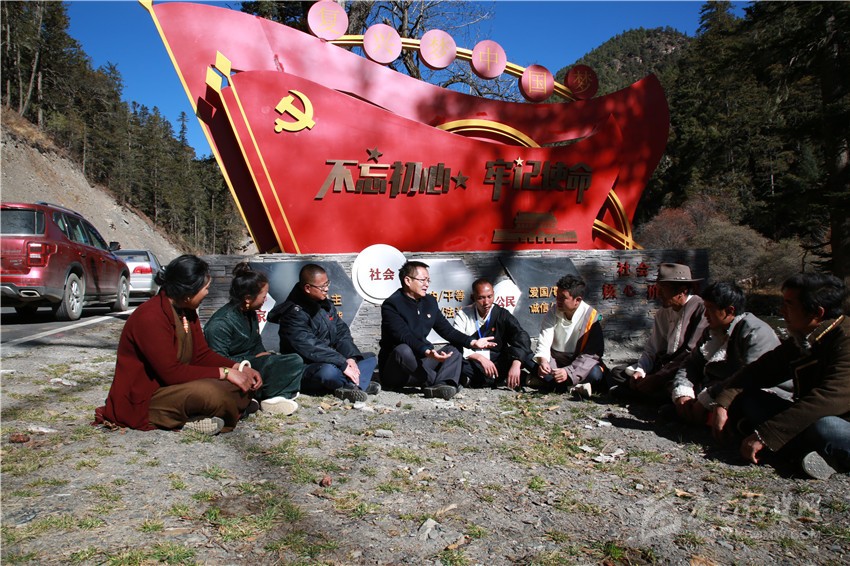 11月20日,記者乘坐的采訪車(chē)從稻城亞丁景區(qū)入口方向拐了個(gè)彎,沿著平坦的柏油路前行了26公里,木拉鄉(xiāng)麻格同村便映入眼簾,一塊黨旗造型的文化墻上寫(xiě)著“不忘初心、牢記使命”幾個(gè)大字,墻體下方刻有社會(huì)主義核心價(jià)值觀內(nèi)容,讓人眼前一亮。幾個(gè)村民圍坐在一起,商量著什么。記者停車(chē)詢(xún)問(wèn)得知,四川旅投集團(tuán)駐村干部王雷正在和村“兩委”以及部分村民代表,商議動(dòng)工修建棧道,為游客開(kāi)展馬幫服務(wù)的事情。