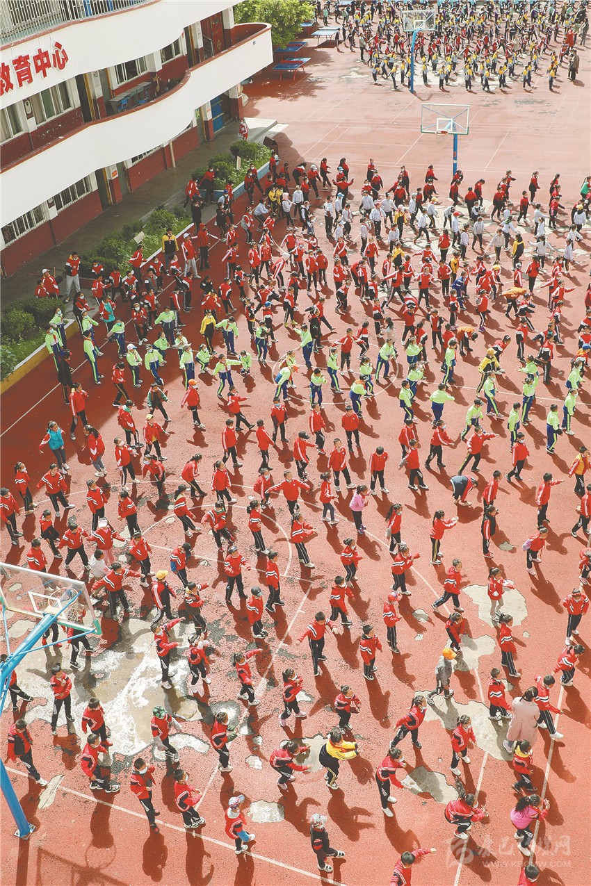 白玉縣一完小學(xué)生做課間操。