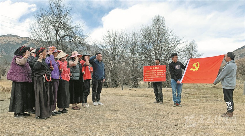 宣講結(jié)束后,提吾村全體黨員面對(duì)鮮紅的黨旗,高舉右手,再次莊嚴(yán)宣誓:“我志愿加入中國(guó)共產(chǎn)黨……隨時(shí)準(zhǔn)備為黨和人民犧牲一切,永不叛黨?!辩H鏘的誓詞,激勵(lì)著在場(chǎng)的每一位黨員,更加堅(jiān)定了黨員們的入黨初心和奮斗使命。