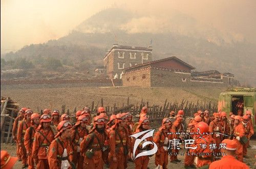 爐霍專業(yè)森林撲火隊隊長阿代介紹說:“接到命令后,我們立刻組織34名撲火隊員,緊急出動四輛森林消防車和一輛行動車趕赴火場。因火場山高路陡,撲火器材只能用人工的方式運送到一線,70公斤的器材兩個人扛,15斤一盤的水袋一個人一次背兩三盤,有的地方需要涉過刺骨冰冷的河水到達(dá)一線,許多隊員都出現(xiàn)了體力透支的現(xiàn)象,但沒有一個人叫苦喊累。”