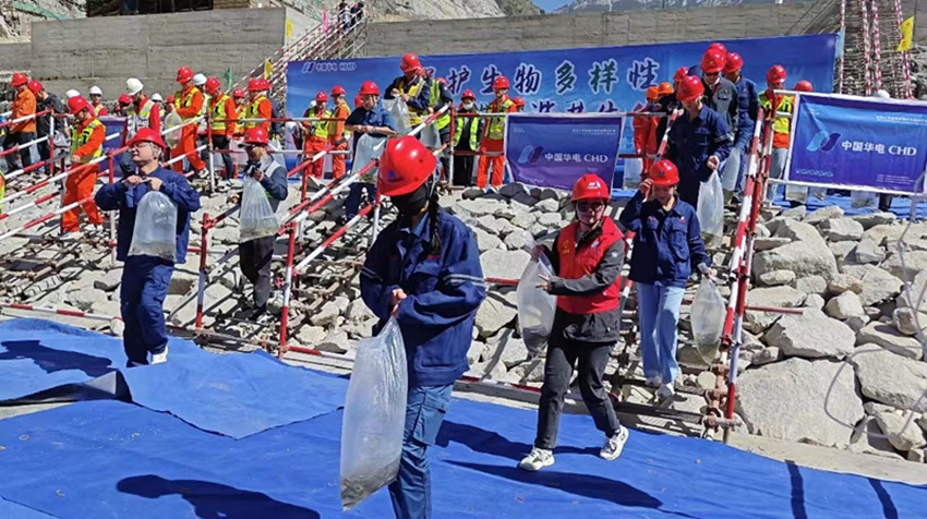 “今年放流的魚苗種類繁多,有四川裂腹魚、短須裂腹魚、長絲裂腹魚、裸腹葉須魚、軟刺裸裂尻等,其中,裸腹葉須魚為中國瀕危動(dòng)物紅皮書‘易?!~類,四川裂腹魚為四川省重點(diǎn)保護(hù)魚類?!比A電金上葉巴灘分公司負(fù)責(zé)人說,為減少工程建設(shè)對魚類及水生生物的影響,公司建立了萬里長江第一級魚類增殖放流站,是國內(nèi)首個(gè)截流當(dāng)年開展增殖放流的水電站,自2019年首次舉辦試驗(yàn)性增殖放流活動(dòng)以來,累計(jì)放流106萬尾特有珍稀魚苗。同時(shí)為進(jìn)一步推進(jìn)金沙江魚類種群恢復(fù)、水域生態(tài)環(huán)境的改善,公司還追加了1.7億元的環(huán)保投資,增設(shè)了一臺生態(tài)備用機(jī)組,提高運(yùn)行期生態(tài)下泄流量的安全度和保證率。聯(lián)合華中農(nóng)業(yè)大學(xué)開展黃石爬鮡、姚氏高原鰍等遠(yuǎn)期放流魚種人工繁殖技術(shù)研究,采取分層取水技術(shù),有效改善水庫下泄水溫,為魚類繁殖生存提供適宜條件。