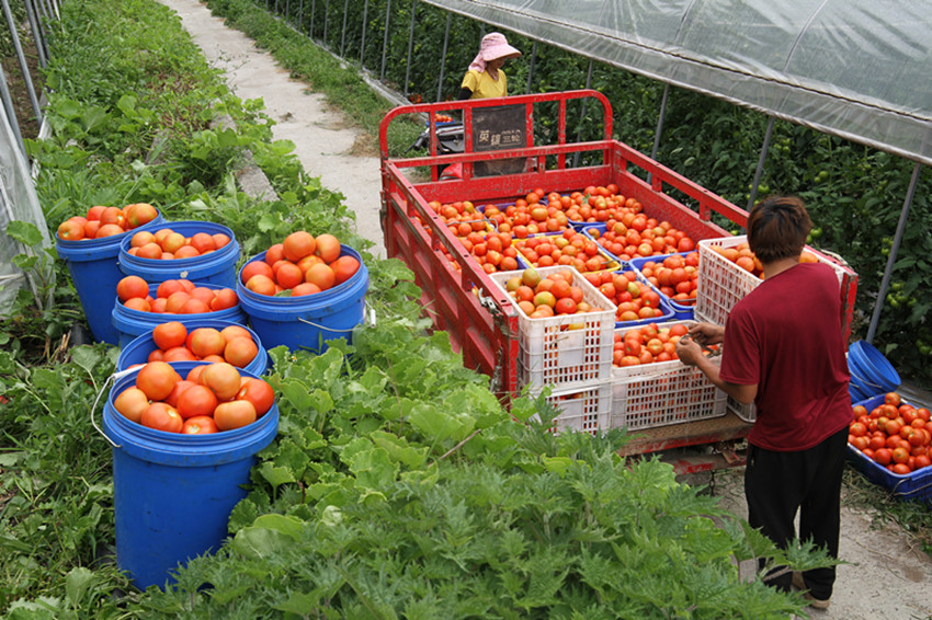 村民正在裝運(yùn)西紅柿。