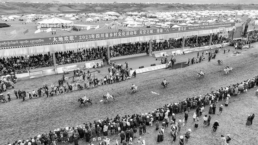 “中國藏族賽馬文化之鄉(xiāng)”“理塘八一傳統(tǒng)賽馬會”是四川涉藏州縣規(guī)模最大的賽馬會,賽馬傳統(tǒng)延續(xù)長達400余年?!霸缇吐犝f過馬背上的理塘,今天終于親眼所見,實在不虛此行。草原追風,策馬飛奔,蹄聲如雷,震徹山野,這是多么壯美的理塘萬馬奔騰圖?。《嘞脒h離城市的喧囂,策馬揚鞭,馳騁草原,豪邁瀟灑,勇往直前。以后每一年的理塘賽馬活動,我一定會帶上家人再來這里,因為理塘,可謂是心靈棲息的地方。”在“大地歡歌”2023年四川省鄉(xiāng)村文化活動年——天空之城·理塘“八·一”賽馬會上,來自北京的游客石磊被當?shù)刭愸R文化吸引,和朋友玩得不亦樂乎。