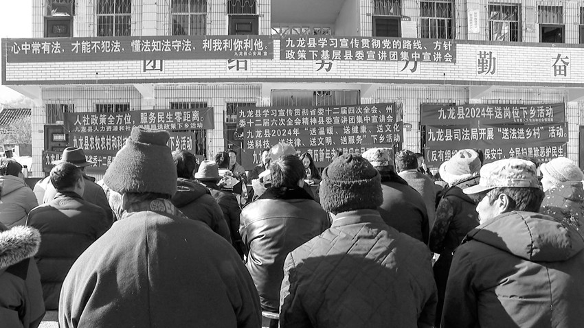 本網(wǎng)訊 1月12日至14日,九龍縣委宣傳部組織縣司法局、縣農(nóng)牧農(nóng)村和科技局、縣衛(wèi)生健康局等部門,聯(lián)合開展了學(xué)習(xí)宣傳貫徹習(xí)近平新時(shí)代中國(guó)特色社會(huì)主義思想、省委十二屆四次全會(huì)精神、州委十二屆六次全會(huì)精神宣講暨“七下鄉(xiāng)”暖冬行動(dòng)。