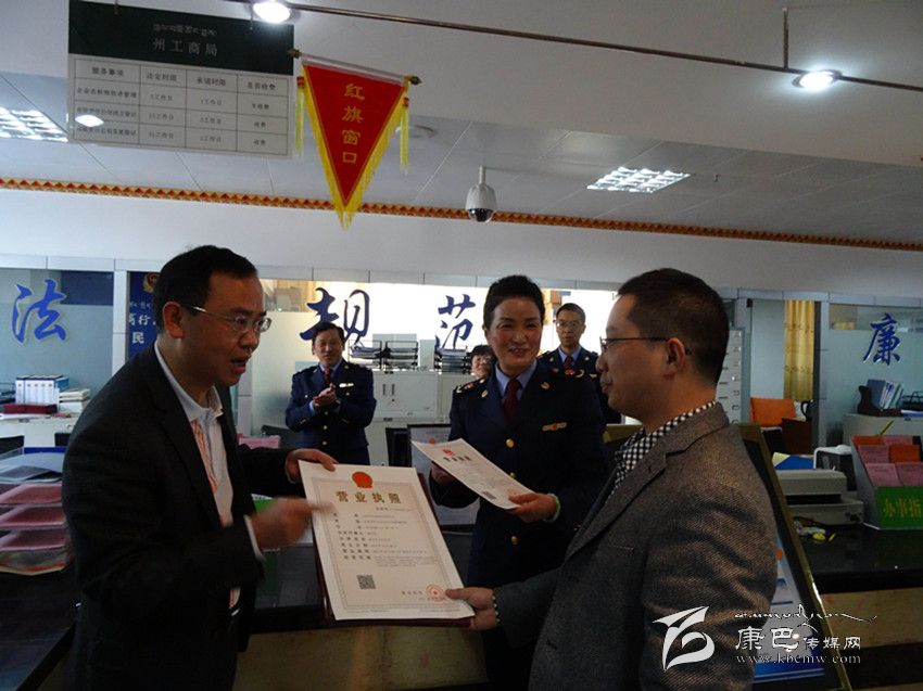 本網訊(郭梅/文 鄧安宇/圖 ) “我在綿陽市做生意,甘孜州提出打造‘圣潔甘孜’品牌時,我就醞釀注冊一家電商公司,在新聞上看到甘孜州要實行‘先照后證’,我第一時間趕過來,不到15分鐘就拿到了營業(yè)執(zhí)照!”10月8日上午,我州“先照后證”試點工作在康定縣啟動后,州政府政務大廳工商窗口把“先照后證”第一份營業(yè)執(zhí)照頒發(fā)給了敬開春,登記窗口書面告知他,隨后將在康定縣食藥局辦理食品流通許可證。