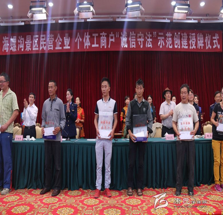 對公示無異議的178戶“誠信守法”示范創(chuàng)建戶命名授牌,由州工商局、海螺溝管理局授予甘孜州海螺溝景區(qū)"誠信守法示范戶",并頒發(fā)牌匾。 被授予“誠信守法示范戶” 178戶商家莊嚴(yán)宣誓:自愿申報成為“誠信守法”示范企業(yè)(個體工商戶),一定信守承諾、珍惜榮譽(yù),將“誠信”作為立業(yè)、興業(yè)的基石和名片,崇尚法律、敬畏法律,依法經(jīng)營。同時,在“誠信守法”示范創(chuàng)建承諾書上莊重地簽下自己的名字。