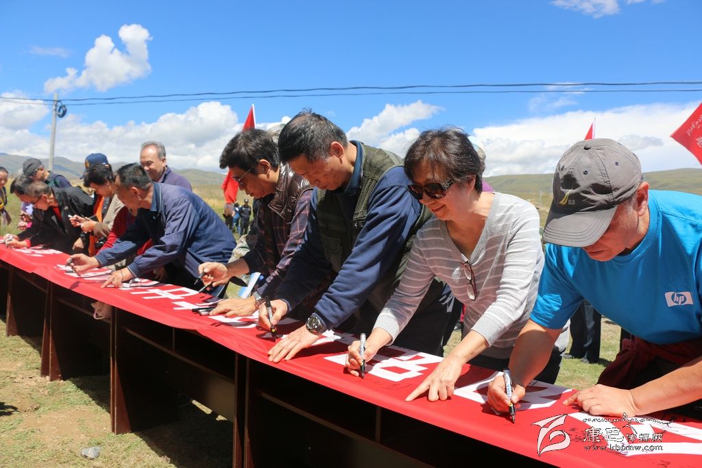當(dāng)天中午,“甘孜州紀(jì)念紅軍長(zhǎng)征在甘孜80周年暨紅色文化旅游宣傳促銷(xiāo)系列活動(dòng)之紅軍后代重走長(zhǎng)征路活動(dòng)”在該縣十八軍窯洞群遺址隆重舉行,康北民族高級(jí)中學(xué)、斯俄鄉(xiāng)干部、武警官兵、寺廟僧人600人參加了此次活動(dòng)?;顒?dòng)中,紅軍后代們認(rèn)真聆聽(tīng)了講解員介紹十八軍窯洞群鮮為人知、催人奮進(jìn)的歷史故事。他們敬獻(xiàn)花圈、整理挽聯(lián),向在高原上艱苦奮斗、舍身赴義的革命先輩們默哀。隨后,參與活動(dòng)人員在“藏漢一家親”和“紀(jì)念紅軍長(zhǎng)征在甘孜80周年”的巨型橫幅上簽名,并與紅軍后代徒步一公里,其間由學(xué)生、群眾代表、志愿者和紅軍后代互動(dòng)拉歌 。大家用自己的歌聲、自己的行動(dòng),回顧那段歷史,緬懷革命先輩的豐功偉績(jī),感受紅軍先烈們艱苦的生活環(huán)境和艱險(xiǎn)的戰(zhàn)斗歷程。