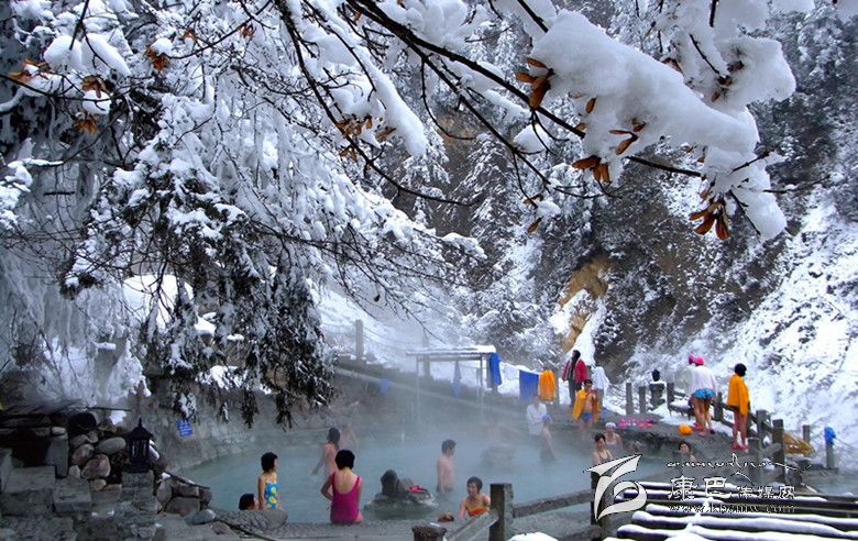 雪中泡溫泉。