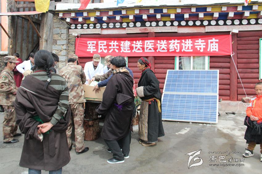 甘孜軍分區(qū)官兵送醫(yī)送藥進寺廟。