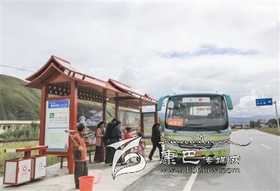 甘孜縣公交車(chē)開(kāi)進(jìn)鄉(xiāng)村。