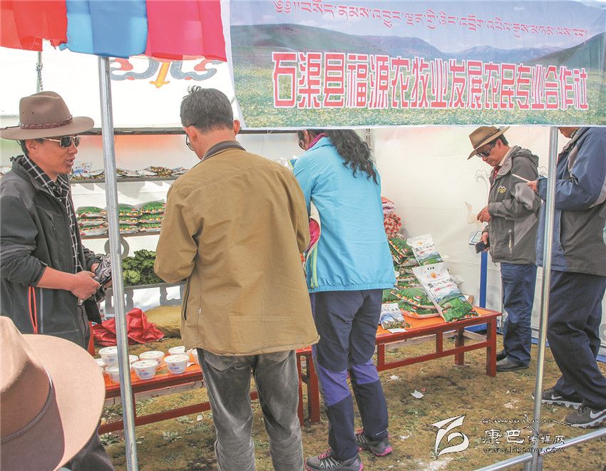 8月3日是石渠縣帳篷節(jié)的最后一天,清晨的陽光透過炊煙傾灑在草原千余頂帳篷上,40多歲的藏族漢子嘎戎從生活區(qū)的帳篷里出來,走向不遠(yuǎn)的太陽部落帳篷商貿(mào)城集市。那里安扎著400多頂帳篷,有商戶370家,周邊還有50多個流動的小商販。嘎戎所在的石渠縣福源農(nóng)牧業(yè)發(fā)展農(nóng)民合作社就是其中的一家參展商。從帳篷節(jié)開始,嘎戎就和其它5個人輪流值守這個他們倍加珍惜的展位,那是他們合作社自今年4月份成立至今第一次在如此重大的場合中露面,經(jīng)過這次檢驗(yàn),他們對自己的產(chǎn)品更加有信心。駐真達(dá)村第一書記祝修濤告訴記者,短短一個星期,合作社展售的糌粑、人參果、奶渣近2000斤,銷售額達(dá)4萬多元。這個農(nóng)民專業(yè)合作社以扶貧為己任,從建設(shè)種植基地到水磨房加工投入了200多萬元,全村50戶村民參與,合作社將原料統(tǒng)一發(fā)給村民加工,再統(tǒng)一收起來,統(tǒng)一包裝銷售。祝修濤說,社里的產(chǎn)品剛開始只是在當(dāng)?shù)爻鍪?,雖然投入大但產(chǎn)量不敢做大,這次有這個平臺得到了市場的認(rèn)可,他們對合作社的發(fā)展充滿了信心。祝修濤,作為該村的第一書記,他要帶領(lǐng)著這個合作社好好規(guī)劃、大干一場。