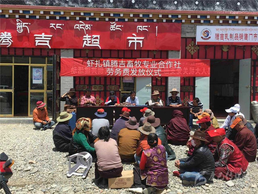 “精準扶貧”貴在“精準”,精確找準“貧困癥結”,準確“對癥下藥”;由于塔須村惡劣的自然環(huán)境制約,村民們還過著古老傳統(tǒng)的游牧生活,導致塔須村社會、經(jīng)濟、文化發(fā)展相對滯后,全村無集體經(jīng)濟產(chǎn)業(yè),屬于我州貧困村中的“貧中之貧”,以往傳統(tǒng)的扶貧措施猶如“灑胡椒面”,治標不治本;“授人以魚,不如授人以漁”,為讓塔須村能建立村集體產(chǎn)業(yè),村民們能掌握一門致富手藝,州水務局結合塔須村實際,多次派遣工作組深入塔須村,了解貧困戶生活現(xiàn)狀、致富愿望,聽取村兩委干部建言,形成專題脫貧報告;鑒于牧民致富愿望強烈,村干部建言獻策,在州水務局的積極協(xié)調(diào)下,在蝦扎鎮(zhèn)黨委、政府的倡導下,經(jīng)石渠縣人大牽頭,通過州級各聯(lián)系單位、駐村幫扶工作組和村兩委的努力,整合各方人力、物力、財力,團結協(xié)作,于2016年3月成立了“石渠縣蝦扎騰吉畜牧專業(yè)合作社”,并選舉出9名致富能手為騰吉專業(yè)合作社理事人選。“騰吉合作”乃飛騰吉祥之意,寓意著牧民群眾齊心協(xié)力,共奔小康。