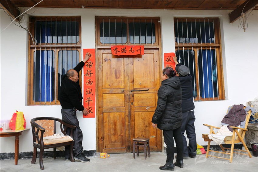 貼完自家的春聯(lián),老陳又到鄰居家?guī)兔N,見到鄰居蘭大爺家準備的春聯(lián)與街上賣的不一樣,是手寫春聯(lián)。老陳一打聽才知道,原來海螺溝管理局宣教群團處正開展“迎新春,送春聯(lián)”活動,這些手寫春聯(lián)正是蘭大爺特意去活動現(xiàn)場免費領取的??粗鴷◥酆谜啐堬w鳳舞的字體,老陳非常喜歡,轉頭對妻子說:“過兩天咱們也去要兩幅手寫春聯(lián)回來”。