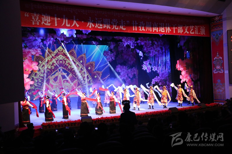 本網(wǎng)訊(記者 宋志勇 文/圖)9月29日,由州委、州政府主辦,州委組織部、州委老干部局、州文體廣新局承辦的“喜迎十九大、永遠(yuǎn)跟黨走”全州離退休干部文藝匯演在康定劇場舉行,旨在謳歌黨在藏區(qū)的豐功偉績,頌揚甘孜兒女今天的幸福生活。州級退休老領(lǐng)導(dǎo)胡克禮、吞珠、寧紹武、便巴傾批、李明璽、何濤、李其福、郭昌平以及州委老干部工作領(lǐng)導(dǎo)小組成員單位領(lǐng)導(dǎo)和相關(guān)部門領(lǐng)導(dǎo)出席并參加活動。州委常委、宣傳部長相洛出席活動并致辭,省委老干部局副局長史可,州人大常委會副主任白蘇英、州政府副州長鄭天強、州政協(xié)副主席陳洪暴和特邀嘉賓涼山州委組織部副部長、老干局局長楊國敏出席并觀看演出。