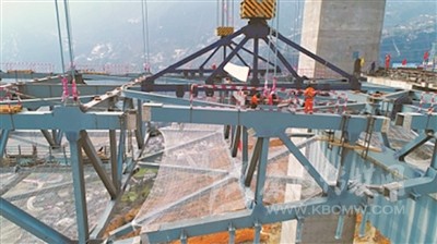蔣錦里告訴筆者,57節(jié)鋼桁梁,每一段鋼桁梁,都是用高強(qiáng)度螺栓進(jìn)行固定的。一排排的螺栓,如果有一個螺栓安裝有偏差,其它螺栓就對不上孔,便無法安裝上去。因此每一顆螺栓的安裝精度,都是以毫米來計算的,“螺栓直徑24毫米,螺栓孔直徑26毫米,只有2毫米可供周旋。”總共算下來,興康特大橋一共要使用接近60萬顆高強(qiáng)度螺栓,是其它大型橋梁的數(shù)倍。目前,興康特大橋57節(jié)鋼桁梁均已成功吊裝,整個線型滿足要求,近60萬顆螺栓無一擴(kuò)孔現(xiàn)象發(fā)生。