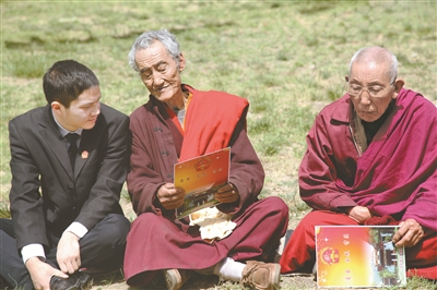 藏漢雙語法制宣講進(jìn)寺廟。