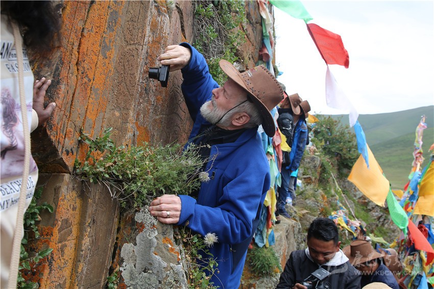 專家學(xué)者考察石渠巖畫。