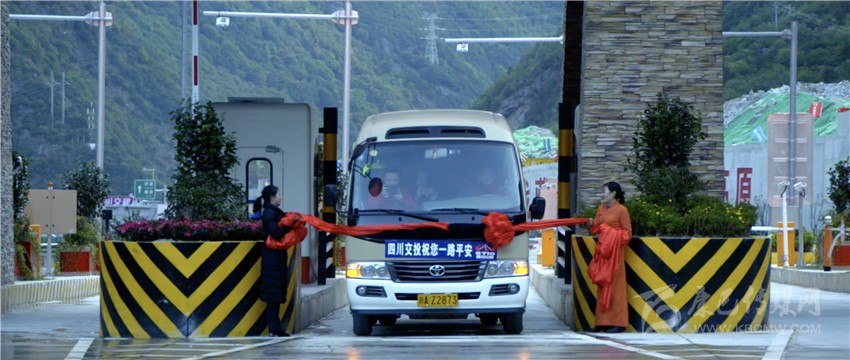 “木雅古碉”建筑矗立兩旁、六出四進(jìn)通道一字排開;巨大熒幕流光溢彩,連接通道窗明幾凈;從無(wú)人機(jī)航拍畫面可以看到,一面巨大的五星紅旗,已在站頂平層鋪展開來(lái)……9月28日上午8時(shí)整,一輛客車從升航特大橋駛來(lái),撞破紅綢駛向康定城,旁邊車道上等待多時(shí)的車輛依次行進(jìn),雅康高速公路上規(guī)模最大的收費(fèi)站——康定收費(fèi)站正式啟用,康定連接線和入城大道通車?!翱刀ㄟB接線建成后將極大提高雅康高速公路進(jìn)入康定城區(qū)車輛通行效率、有效改善康定入城交通的擁堵狀況?!辈貐^(qū)高速公路公司相關(guān)負(fù)責(zé)人如是說(shuō)。