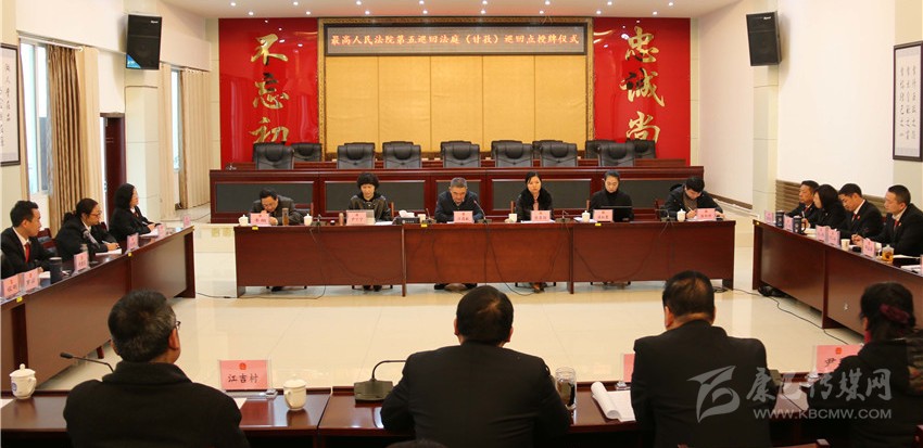 本網(wǎng)訊 11月13日,最高人民法院第五巡回法庭(甘孜)巡回審判點(diǎn)授牌儀式在甘孜州中級(jí)人民法院舉行,此次在四川設(shè)立兩個(gè)巡回點(diǎn),州中級(jí)人民法院是授牌點(diǎn)之一。最高人民法院第五巡回法庭分黨組成員、副庭長(zhǎng)汪國(guó)獻(xiàn)為該院授牌并在儀式上作講話,甘孜州中級(jí)人民法院黨組書記、代理院長(zhǎng)付寶接牌并作相關(guān)工作匯報(bào)。