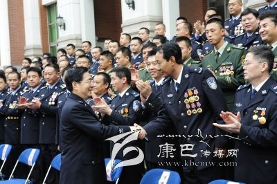 2013年10月,國(guó)務(wù)委員、公安部長(zhǎng)郭聲琨接見(jiàn)全國(guó)公安英模代表。 (州特警支隊(duì)提供)
