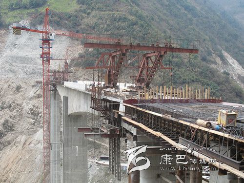 3月12日上午,記者在大崗山水電站S211復建公路工程(瀘石路)B標段跨徑為296米的大渡河大橋(又名灣東大橋)的施工現(xiàn)場看到,高聳的吊裝機隆隆作響,T梁上鋼筋林立;戴著安全頭盔的施工人員正在精心“編織”鋼筋網(wǎng)陣,掛籃懸臂也同時在澆筑施工,大橋已初具雛形。連接大橋的聯(lián)合村隧道內(nèi),同樣一派忙碌的場面,挖掘機、運輸車等各類工程車往來進出,施工便道上馬達聲轟鳴;正在洞口緊張焊接的鉆孔臺架上劃出一道道閃亮的弧線;隧道內(nèi)燈火通明,工人們正有條不紊地在洞壁上鉆孔……