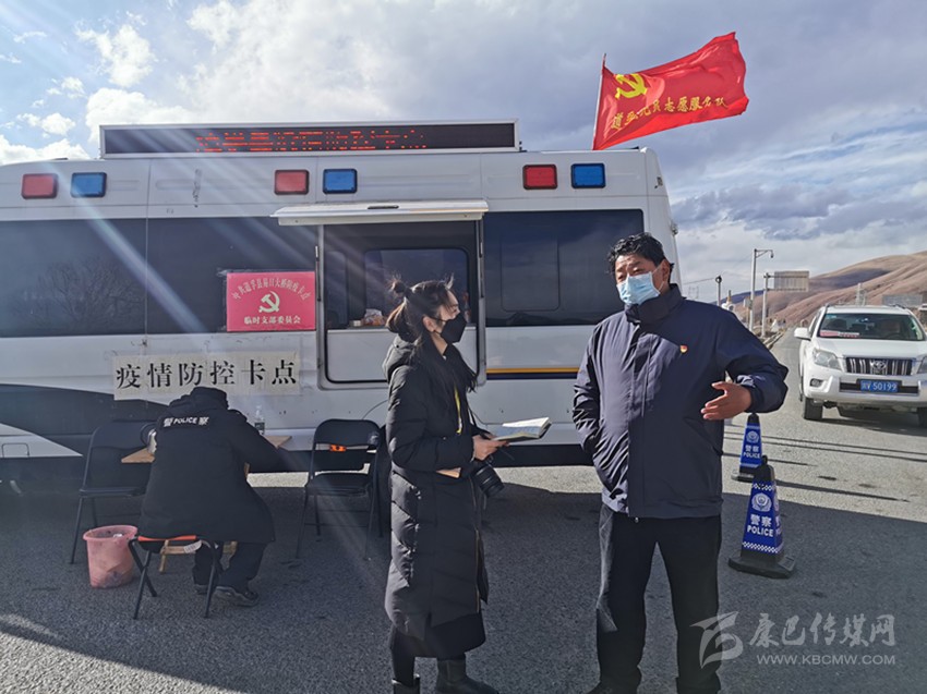 張亞賢在道孚縣疫情防控卡點(diǎn)采訪。