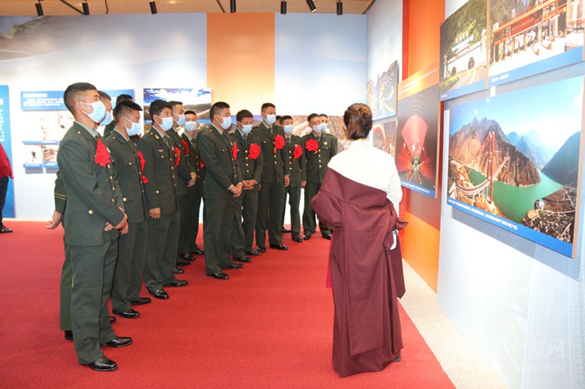 圖為康定市組織退役軍人參觀建州70周年成就展。