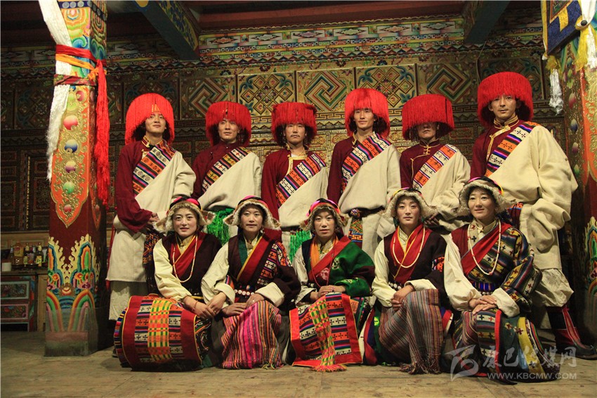 木彭措(后排左三)和康定市朋布西鄉(xiāng)木雅鍋莊隊(duì)部分演員合影。 唐闖 攝